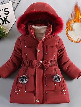 Bambini Ragazze Cappotto in Piuma Tinta unica Moda Bordo in pelliccia Cerniera Tasca Scuola Cappotto Capispalla 4-12 Anni Inverno Nero Rosa Vino