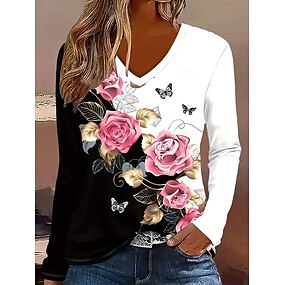 Per donna Maglietta Stampato Floreale Grafico Blocco di colori Vintage Elegante Classico Manica Lunga Scollo a V Top Regolari Quotidiano Rosa Primavera Autunno Inverno