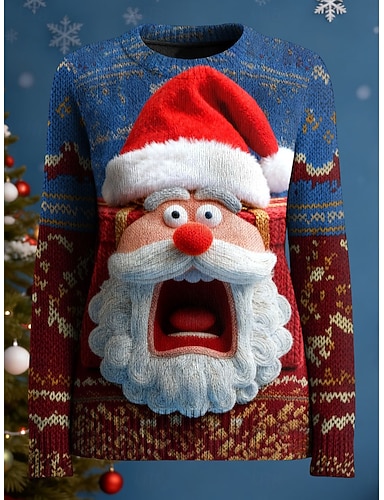 Maglione donna di Natale Pullover Casual Grafica Claus Collo rotondo a costine Manica lunga Top regolari Knit Outdoor Weekend Rosso Blu Reale Autunno Inverno