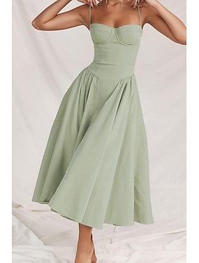 Per donna Abito maxi Abito a trapezio Abito senza schienale Elegante Festa Compleanno Tinta unica Senza Maniche Scollo a V Verde oliva
