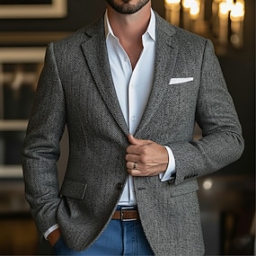 Per uomo Blazer in Tweed Tuxedo Colletto ad incastro Moda Classico Casual Spina di Pesce Blazer grigio marrone Nero Grigio Vestibilità su misura Monopetto Due Bottoni