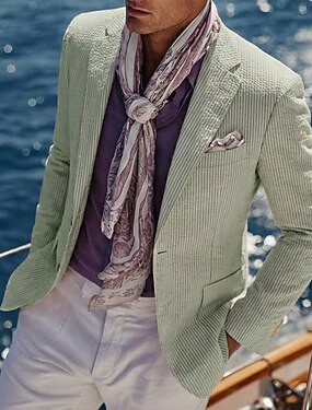 Per uomo Giacca blazer Colletto ad incastro Moda Leggero Casual A righe Linea Abiti in seersucker Blazer in seersucker Rosa Azzurro cielo Verde salvia Vestibilità su misura Monopetto Due Bottoni