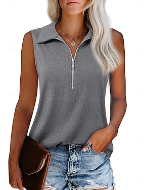 Per donna Camicia Blusa Maglietta senza maniche Zip a un quarto Semplice Elegante Classico Moderno Senza Maniche Colletto a Camicia Top Regolari Quotidiano Ferie Uscire Blu Nero Bianco Verde militare