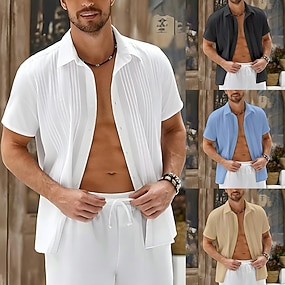 Per uomo Camicia estiva Abbigliamento mare Camicia con bottoni Liscio Informale Giornaliero Nero Bianco Blu Cachi Manica corta Collo ripiegabile Estate Abbigliamento