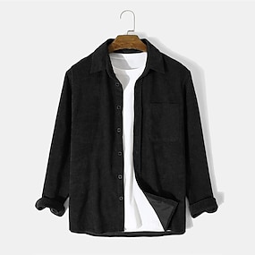 camicia da uomo overshirt camicia di velluto a coste camicia giacca tinta unita couverture nero marrone manica lunga street daily button-down top moda casual confortevole