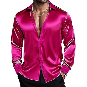 Per uomo Camicia Camicia in raso Camicia elegante Camicia casual Camicia con Bottoni Camicia da Ballo Semplice Performance Anniversario Bianco Vino Rosso Blu reale Manica Lunga Bavero Tutte le