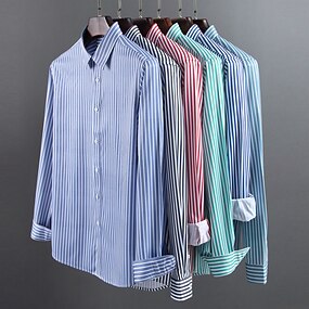 Per uomo Camicia elegante Camicia non stiro A righe Matrimonio Vacanza Nero Verde chiaro Rosso Blu reale Manica Lunga Collo ripiegato Tutte le stagioni Abbigliamento Bottonato