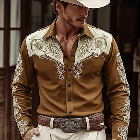 Per uomo Stampa Floreale Etnico Fiori Camicia Camicia Western Camicia da cowboy Manica Lunga Vintage Retrò Casuale All'aperto Abbigliamento da lavoro Primavera Autunno Collo ripiegato Due tasche
