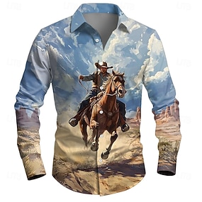 Per uomo Cowboy a cavallo Camicia Camicia Western Camicia da cowboy Manica Lunga Vintage Retrò Casuale All'aperto Abbigliamento da lavoro Primavera Autunno Collo ripiegato Stampa 3D Camicie con