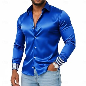 Per uomo Camicia Camicia in raso Camicia elegante Camicia casual Camicia con Bottoni Camicia da Ballo Semplice Matrimonio Formale Nero Vino Blu marino Blu reale Manica Lunga Bavero Tutte le stagioni