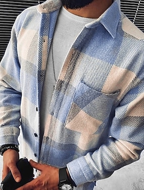 Per uomo Griglia Camicia Camicia di flanella Sopracamicia Manica Lunga Camicia Collo ripiegato All'aperto Streetwear Blu Nero / Bianco Bianco grigio Nero+rosso+grigio scuro Giallo Abbigliamento Moda