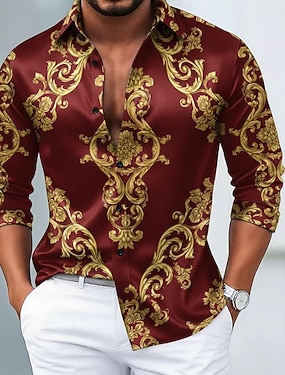 Per uomo Stampa Floreale Barocco Camicia Camicia in raso Camicia elegante Manica Lunga Vintage Retrò Vacanza Abbigliamento Quotidiano Estate Primavera Autunno Collo ripiegato Stampa 3D Camicie con