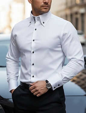 Per uomo Camicia Camicia con colletto a punta di lancia Camicia elegante Camicia button-down Semplice Casuale Quotidiano Nero Bianco Rosso Blu marino scuro Manica Lunga Colletto alla francese
