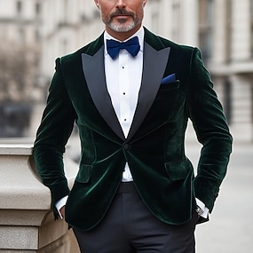 Da uomo Cappotto Invernale Blazer di velluto Formale Abbigliamento da sera Evento / Festa Elegante Classico Inverno Autunno & Inverno 100% Poliestere Velluto Tinta unica Classico Monopetto Un Bottone