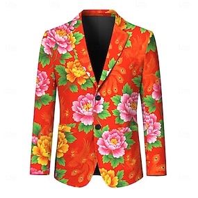 Per uomo Giacca blazer Formale Elegante Casual Quotidiano Tutte le stagioni 100% Poliestere Tessitura Floreale Stampa 3D Bottoni Confortevole Monopetto Giacca Rosso Verde