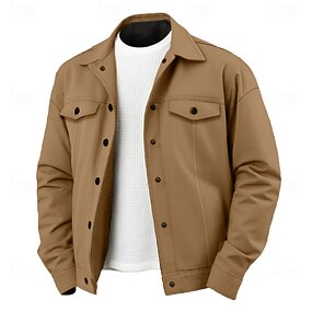 Per uomo Giacca Leggera Giacca Camicia Formale Casa Portatile Bottoni Davanti Primavera Autunno Inverno Tinta unica Attivo Vintage Collo ripiegato Regolare Nero Bianco Marrone Grigio chiaro Giacca