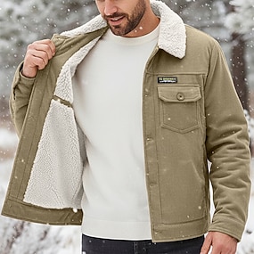 Per uomo Giacca in Velluto a Coste Giacca in Pile Giacca Cargo Giacca da Lavoro Formale Casa Giacca a Vento Durevole Tasca Colletto in pile Autunno Inverno Tinta unica Attivo Vintage Colletto Regolare