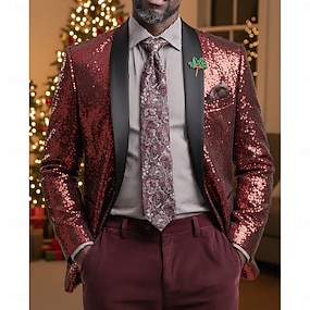 Per uomo Giacca blazer Blazer Collo a scialle Festa Brillanti Casual Tinta unita Argento Nero Vino Vestibilità regolare Monopetto Un Bottone