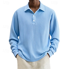 Per uomo Felpa Pullover Polo da golf Formale Ufficio Classico Manica lunga Di tendenza Comodo Tinta unica Liscio Bottoni Autunno Inverno Nero Bianco Verde Cachi Grigio Felpa Pullover