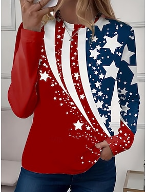 Giorno dell'Indipendenza Maglietta Patriottica da Donna a Maniche Lunga Collo Rotondo Maglione Tunica Stampa Grafica Bandiera Stile Vintage Classico Collo Rotondo Giornaliero Weekend Stampa Bianca