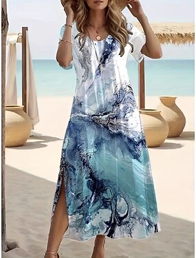 Per donna Abito maxi Vestito T-Shirt Abito a trapezio Abito Estivo Vacanza Casual Spiaggia Uscire Vestibilità regolare Ombre Grafico Paesaggio Manica Corta Girocollo Blu Estate Primavera