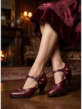 scarpe con tacco slingback bordeaux retrò anni '50 da donna: elegante dettaglio con doppia fibbia e punta quadrata, stile di ispirazione vintage per eventi formali, feste e serate fuori