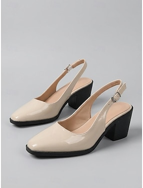 Décolleté slingback color nude da donna - scarpe eleganti con tacco a blocco, perfette per l'ufficio e le riunioni di lavoro. &eleganti abiti da lavoro