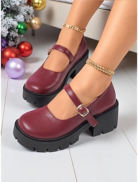 Scarpe con plateau Mary Jane bordeaux da donna con cinturino con fibbia, suola spessa, stile casual ed elegante per l'inverno, il Natale e l'uso quotidiano