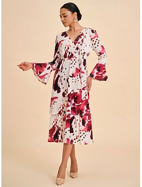 Per donna Femminile Tubino Abito Stampato Abito Midi Arcobaleno Manica Lunga Estate Primavera Scollo a V Moderno S M L