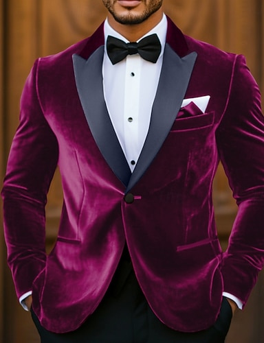 Uomo Smoking Abiti da festa Casuale Rosso Viola Autunno & Inverno Tuta Bavero a lancia Festa Casual Tinta unita Vestibilità su misura 2 pezzi Monopetto a un bottone