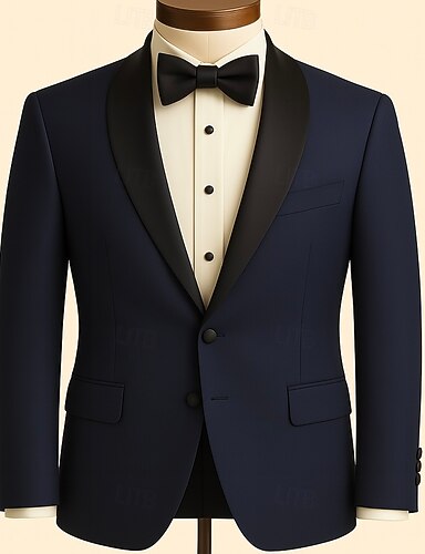Uomo Smoking Abiti da sposa Matrimonio Blu marino Primavera, Autunno, Inverno, Estate Tuta Bavero classico Formale Tinta unita Vestibilità standard 3 pezzi