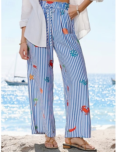 Per donna Gamba larga Chinos Vacanza Moda Streetwear Lunghezza intera Vita Alta A righe Tasca Fascia Elastica Stampato Comodo Comodità Morbido Elasticizzato All'aperto Vacanza Streetwear Blu Estate