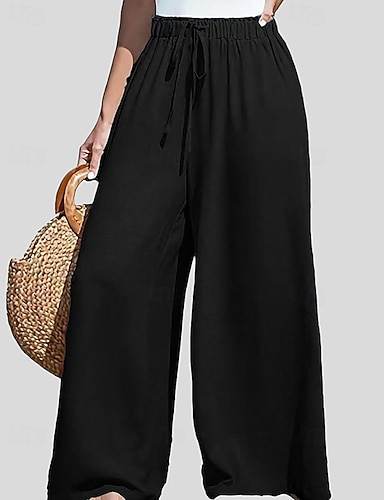 Per donna Finto cotone e lino Gamba larga Chinos Pantaloni Estivi Vacanza Streetwear Casual Lunghezza intera Vita media Semplice Coulisse Tasca Traspirante Micro-elastico Quotidiano All'aperto