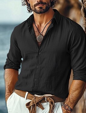 Per uomo Camicia di lino Camicia Estiva Abbigliamento da spiaggia Camicia casual Camicia con Bottoni Semplice Vacanza Crociera Nero Bianco Rosa Blu reale Manica Lunga Bavero Primavera & Estate