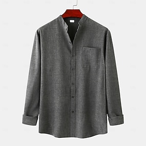 Per uomo Camicia camicia di lino Camicia con colletto a fascia Camicia con bottoni Liscio Da mare Per eventi Viola Cachi Grigio Manica lunga A fascia Estate Primavera & Autunno Abbigliamento