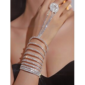 braccialetto di lusso con catena a mano in strass e anello – gioielli scintillanti per le donne, perfetti per matrimoni, feste ed eventi di gala