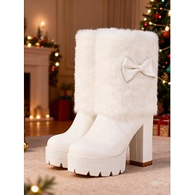stivaletti da donna in pelliccia sintetica bianca con plateau, fiocco e tacco a blocco - stivali da festa di Natale per le feste e l'inverno