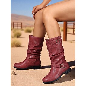 stivali da donna bordeaux a metà polpaccio con fibbia e design morbido – stivali invernali casual in stile equitazione retrò per outfit autunnali e per l'uso quotidiano