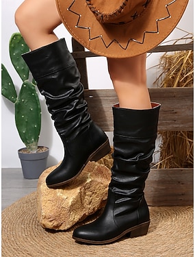 stivali alti fino al ginocchio in similpelle marrone scuro da donna: eleganti stivali con tacco basso per outfit autunnali e invernali
