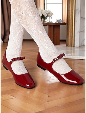ballerine Mary Jane da donna in vernice rossa anni '50 – stile classico retrò con cinturino a fiocco, perfette per la moda vintage e per l'uso quotidiano