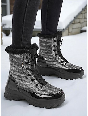 stivali da neve invernali con lacci dorati da donna - fodera in pelliccia sintetica calda, suola antiscivolo impermeabile, abbigliamento alla moda per escursioni all'aperto e tempo freddo