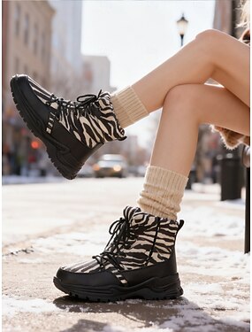 stivali da neve impermeabili da donna con stampa zebrata alla caviglia: calzature da esterno calde, adatte all'inverno, resistenti alla neve e alla pioggia, alla moda
