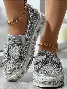 sneakers slip-on con strass scintillanti da donna – mocassini con plateau e fiocco glitterato per feste, moda casual e streetwear