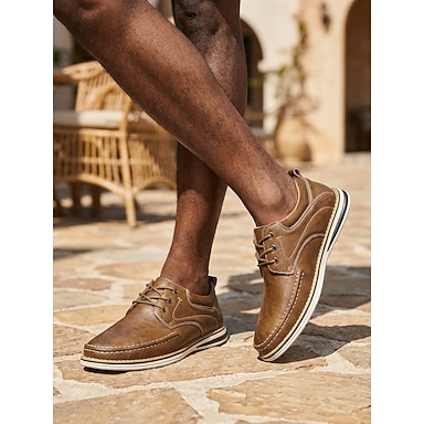 Scarpe derby casual da uomo marroni con lacci, leggere e comode per camminare, ideali per resort all'aperto, viaggi, tempo libero estivo, uscite del fine settimana e stile casual da gentiluomo.