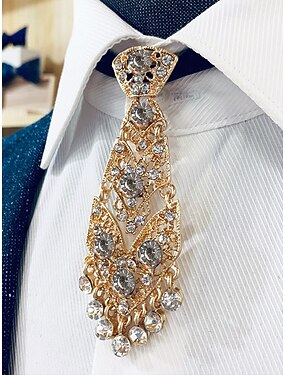 cravatta corta da uomo in metallo dorato – accessorio formale impreziosito da strass per matrimoni, ospiti ed eventi speciali