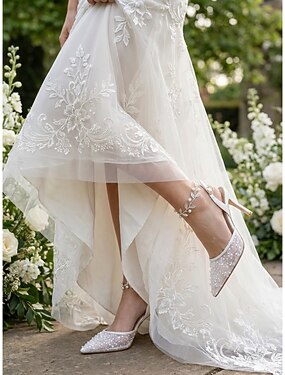 eleganti décolleté da sposa a punta da donna – tacchi da sposa lucidi color carne con punta glitterata per le spose alle cerimonie in chiesa