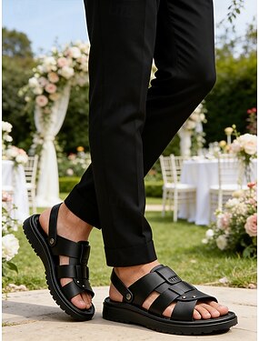 sandali da sposa da uomo, eleganti in similpelle nera, cinturino con fibbia, ideali per sposi e invitati al matrimonio