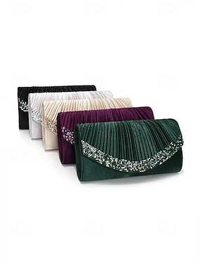 pochette da sera da donna con strass, materiale in poliestere, multicolore, design plissettato con tracolla a catena, perfetta per matrimoni, feste ed eventi formali