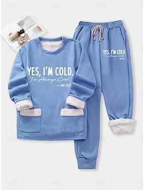 Per donna Caldo Quotidiano Set da due pezzi Tuta Set di Pantaloni Manica Lunga Girocollo Grafico Lettera Coulisse Stampato Casuale Quotidiano Nero Rosa Blu Autunno Vestibilità regolare