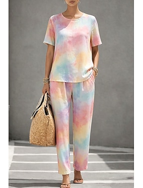 Per donna Set di biancheria in cotone Manica Corta Girocollo Ombre Grafico Elegante Bohemien Attivo Casuale Quotidiano Blu Rosa Beige Estate Vestibilità regolare